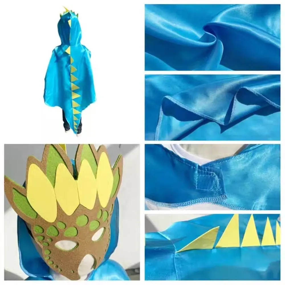 Fancy Mask Dragon Cloak Hooded Cape Cosplay Costumes Halloween Kids Costume Golves Dinosaur Costume Party