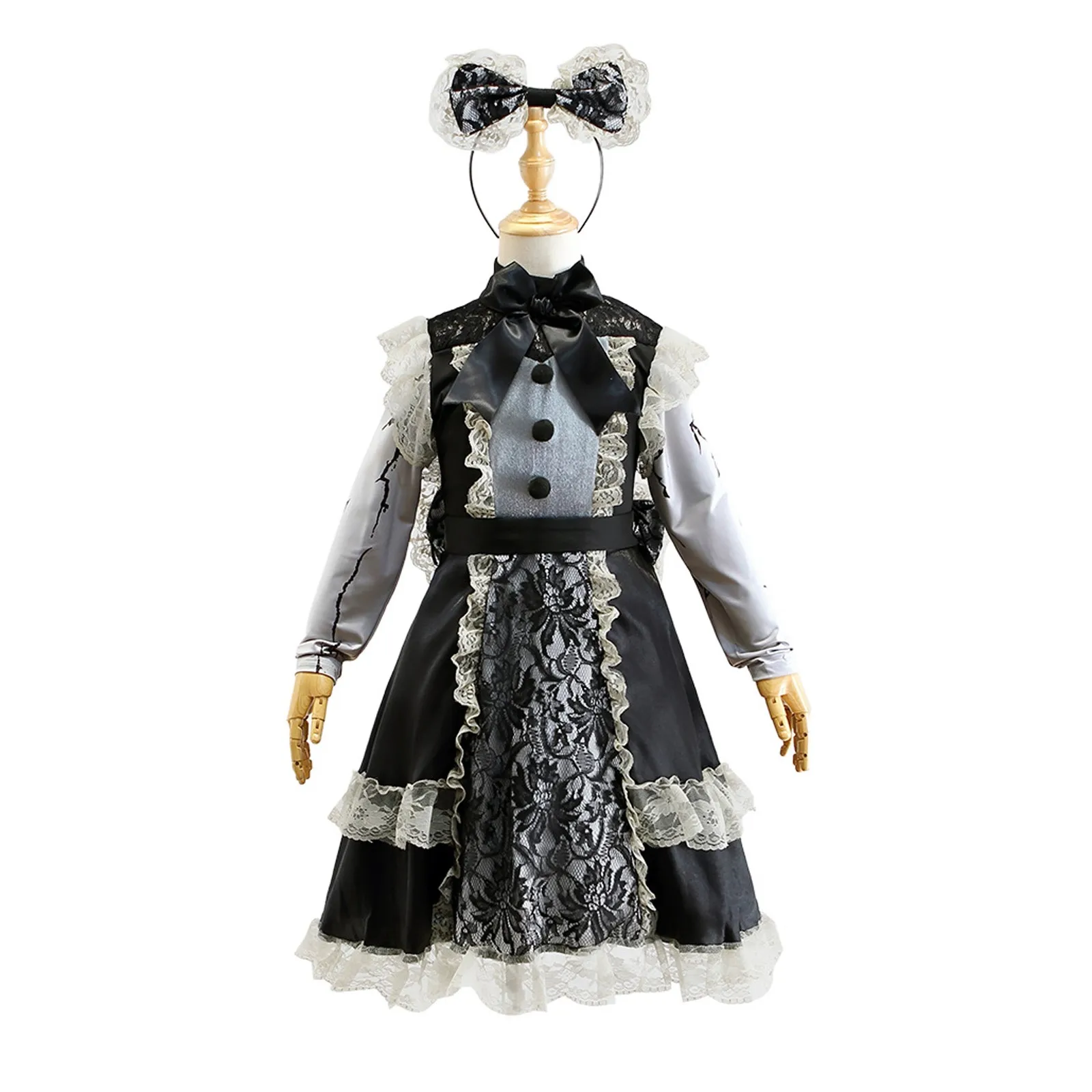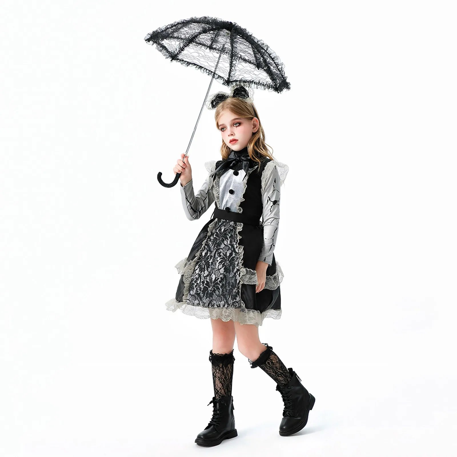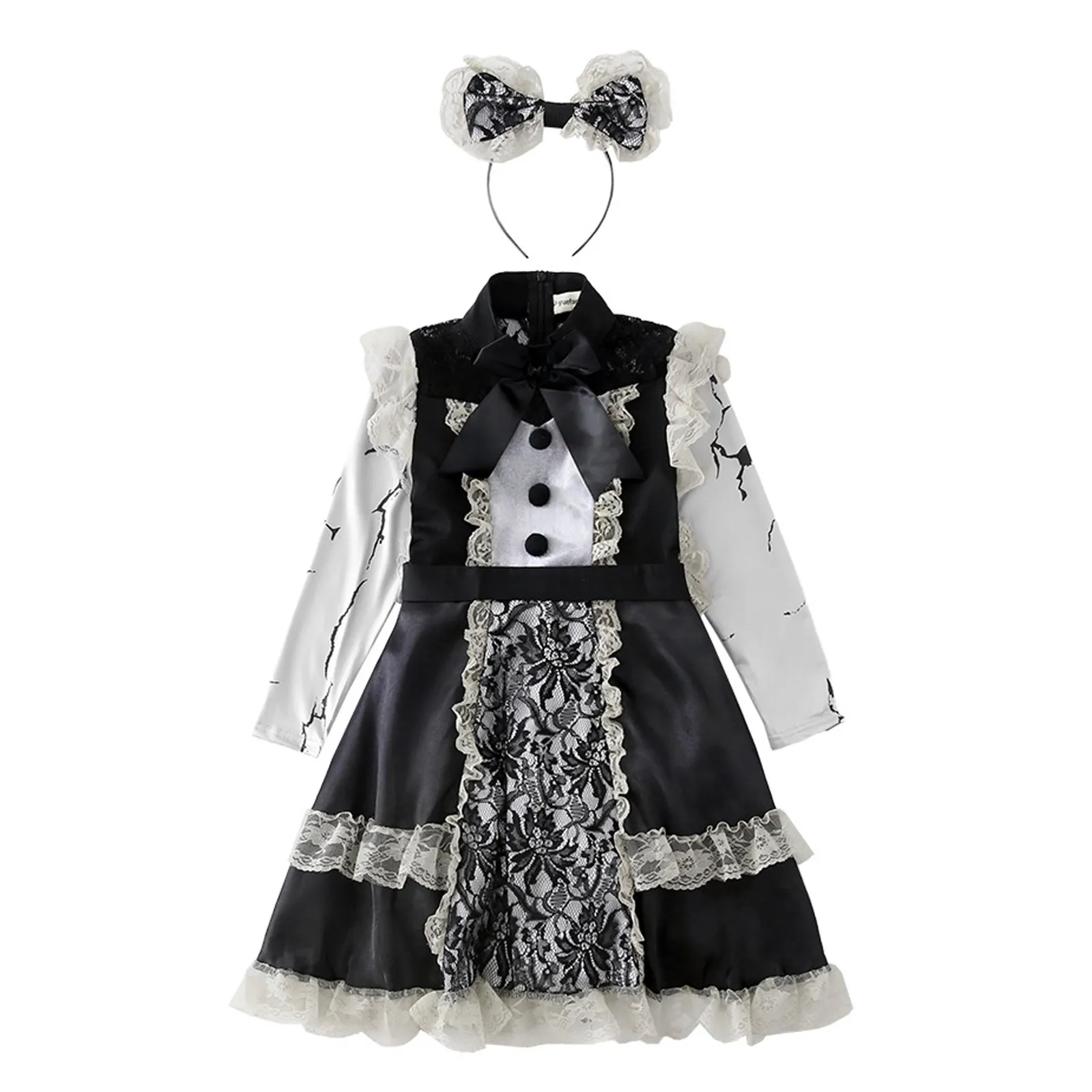 Halloween Cosplay Costume Children Lace Patchwork Dress Dark Gothic Witch Girl Maid Play Costume Masquerade Performance Costumes